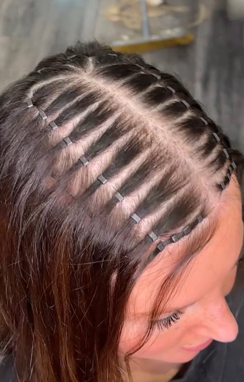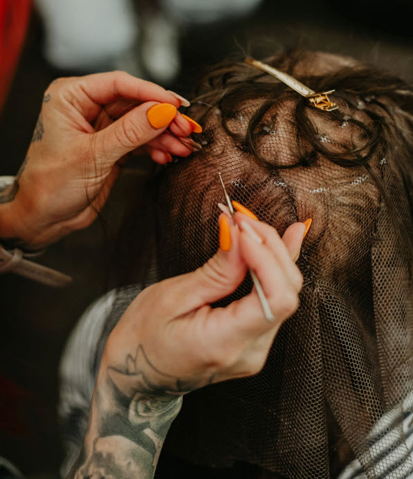 Our mesh integration method is a non-surgical solution designed for women experiencing medical hair loss, including conditions such as alopecia, trichotillomania, and hair loss due to chemotherapy or hormonal changes. Using a lightweight, breathable mesh base, additional hair is carefully added and blended with your own to restore volume, coverage, and confidence. The result is secure, natural-looking, and comfortable—moving just like your own hair while providing discreet, everyday wear.